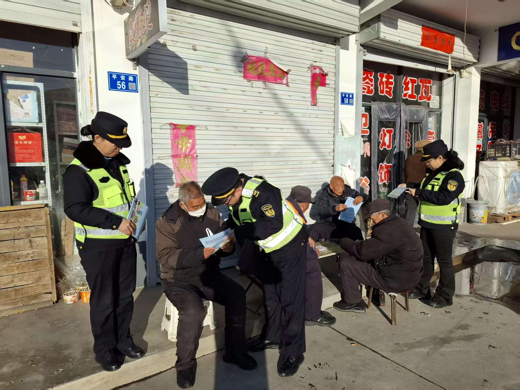 执法人员在人流密集的街道、商圈设置宣传点,向过往群众发放宣传资料。他们耐心解答群众提出的问题,讲解非法营运的常见形式和安全隐患。在文化广场执法人员与群众交流,提醒大家注意识别非法营运车辆,避免自身权益受损。他们通过发放宣传资料、口头交流等方式,确保宣传内容被老年群体准确理解。在临街店铺外,执法人员与店主和顾客交流,提醒大家注意识别非法营运车辆,避免自身权益受损。