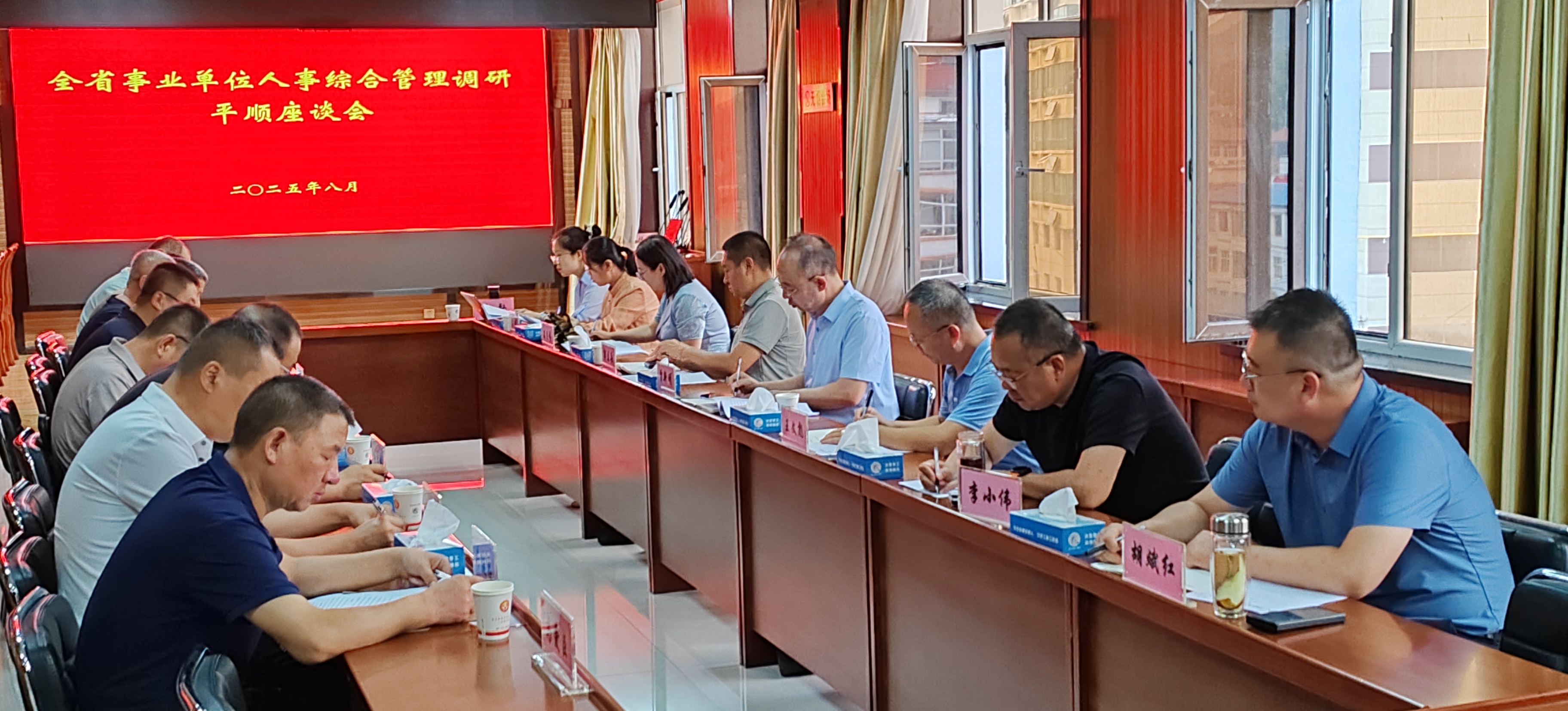 8月20日上午,由省人社厅事业处处长、一级调研员贾新明带队,一行8人到我县调研指导事业单位人事综合工作。座谈会上,贾新明处长就我县事业单位人事工作的当前情况,与县人社、教育等相关部门负责人展开深入交流,并对我县事业单位人事工作提出了宝贵意见。市人社局就业中心主任秦惠忠陪同调研。
