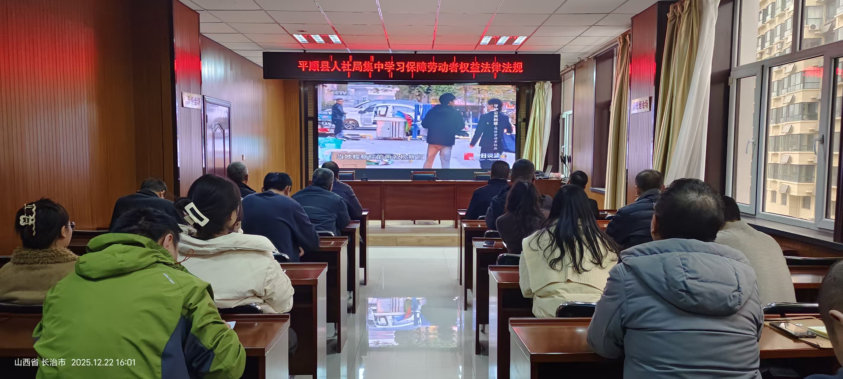 12月22日,平顺县人社局组织全体职工在局四楼会议室集中学习保障劳动者权益法律法规知识。