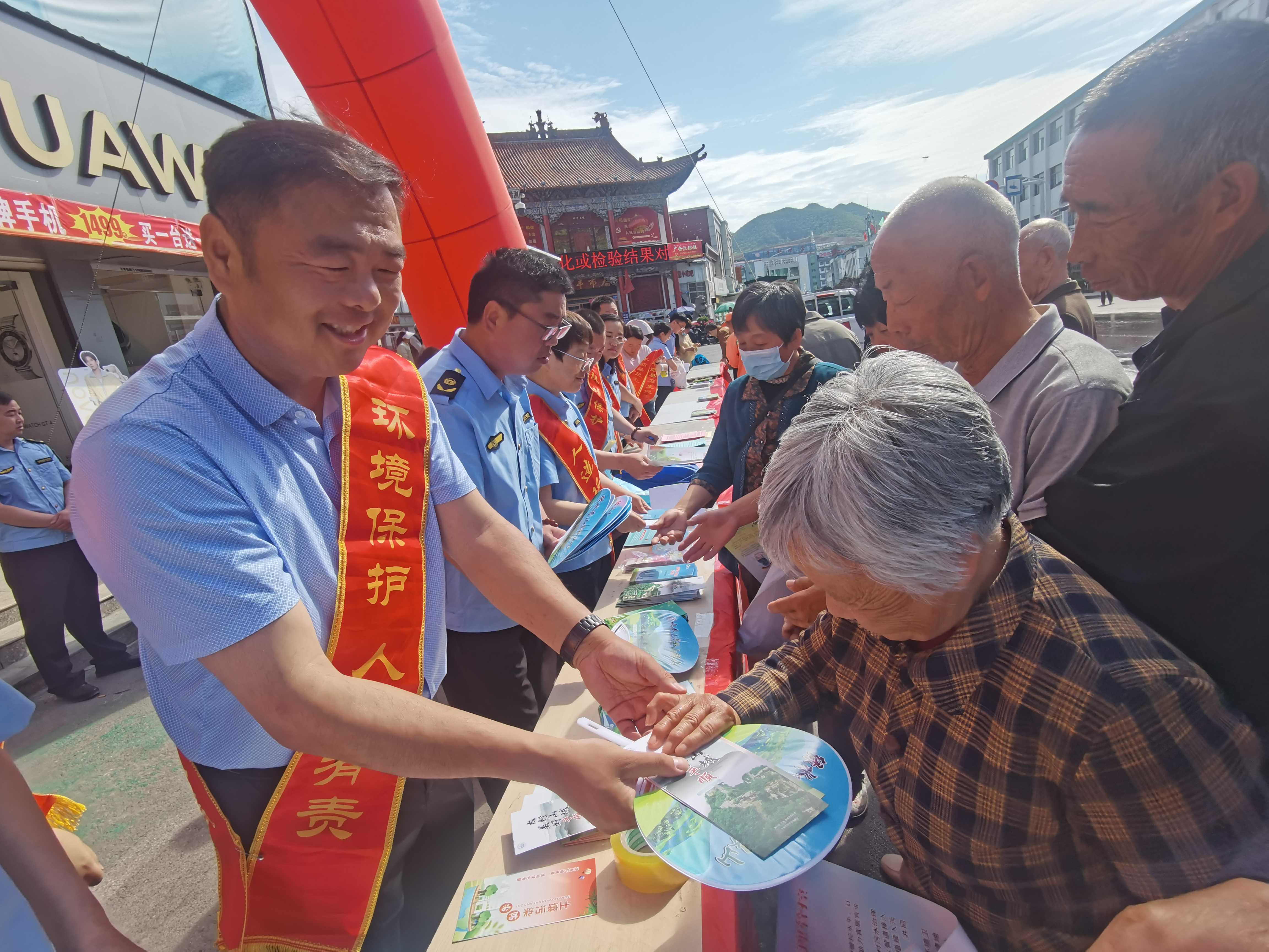 牛佳副县长与工作人员围绕宣传主题,向过往群众宣传环境保护、垃圾分类、绿色消费、绿色出行等环保知识,并通过设置咨询台、发放宣传资料等方式进行宣传,进一步提高群众的生态文明意识,动员全社会共同参与生态文明建设,推动形成人人关心、支持、参与生态环境保护的良好社会氛围。