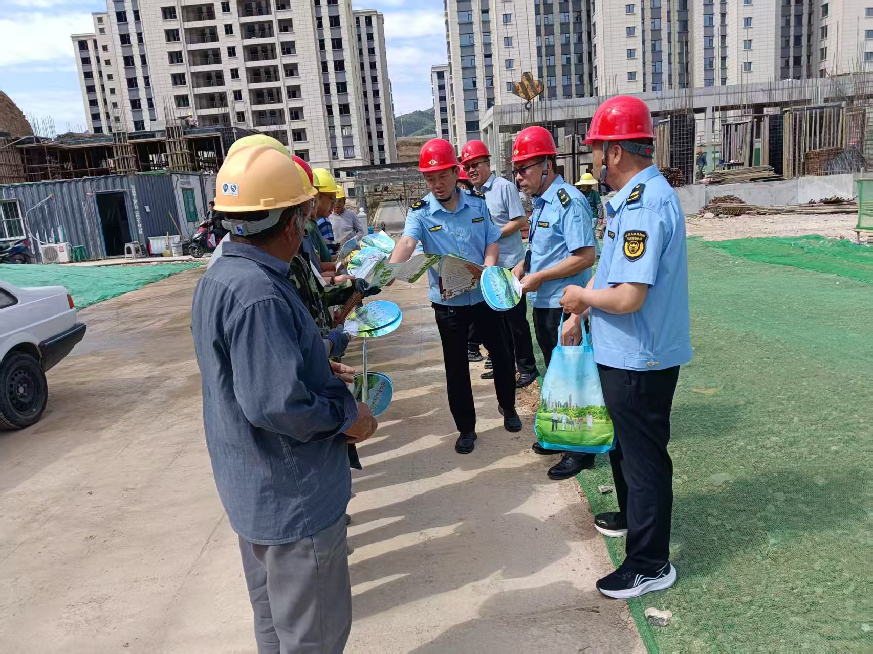 在太行新天地旅游风情小镇二期北地块工程工地发放了施工工地扬尘管控和噪声管理相关资料,倡导积极实施绿色化运输并做好日常的污染防治管理工作。