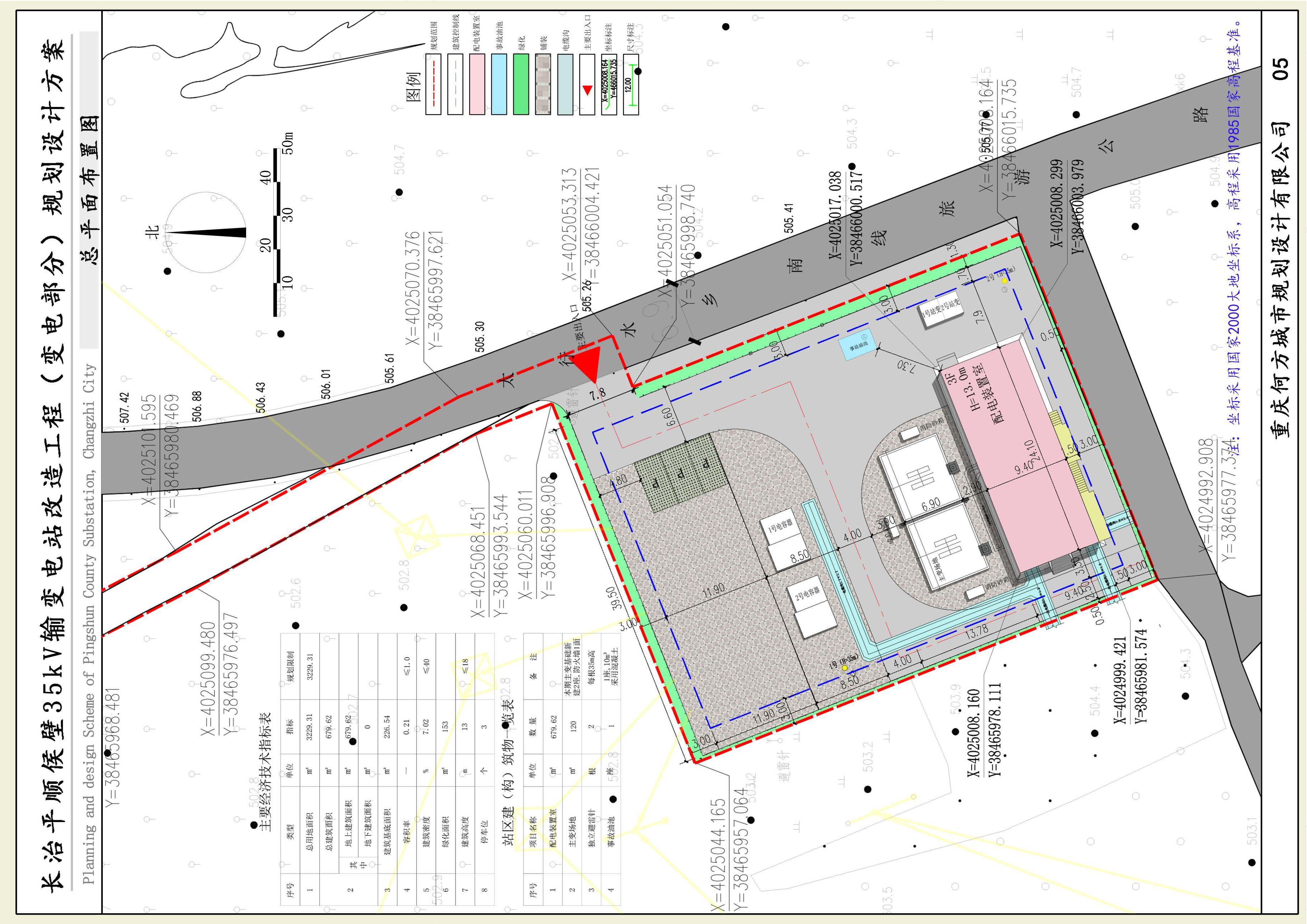 国网山西省电力公司平顺县供电公司承建的山西长治平顺侯壁35kV输变电改造工程(变电部分),位于平顺县石城镇崔家庄村南,漳河东岸,隔河为S324省道。本项目用地面积3229.31㎡,容积率0.21,建筑密度7.02%,绿地率4.74%,建筑退让用地红线南≥3米、北≥3米、东≥3米、西≥3米。建设内容包括新建配电装置室1座,主变场地2座,电容器2座,站变2座,电缆沟,独立避雷针2根,事故油池1座以及站内道路等,总建筑面积679.62㎡,计容面积679.62㎡,其中配电装置室建筑层数为3层,建筑面积为679.62㎡。