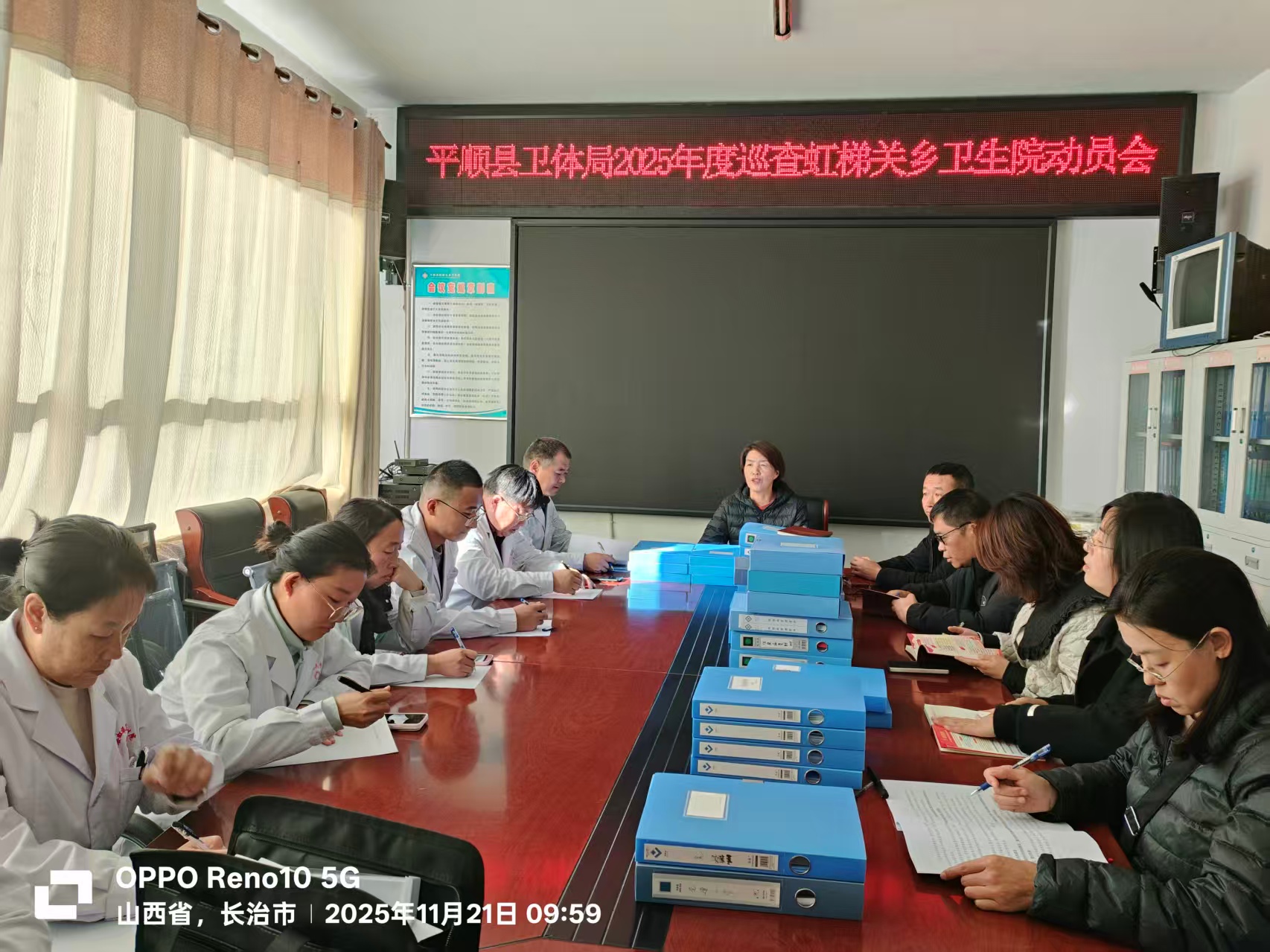为扎实推进我县年度医院巡查工作,切实提升基层医疗机构规范化管理水平,11月21日,平顺县卫体局巡查组前往虹梯关乡卫生院,围绕党建工作、行风建设、经济运行、医院管理及安全生产等重点内容,开展专项巡查指导。