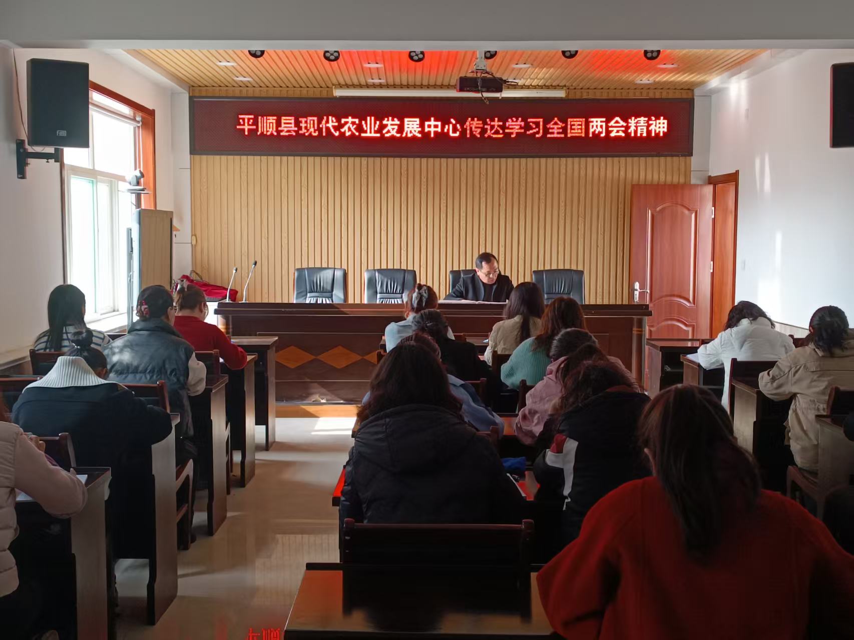 3月17日,县现代农业发展中心召开会议,传达学习全国两会精神。中心全体干部职工参加。
