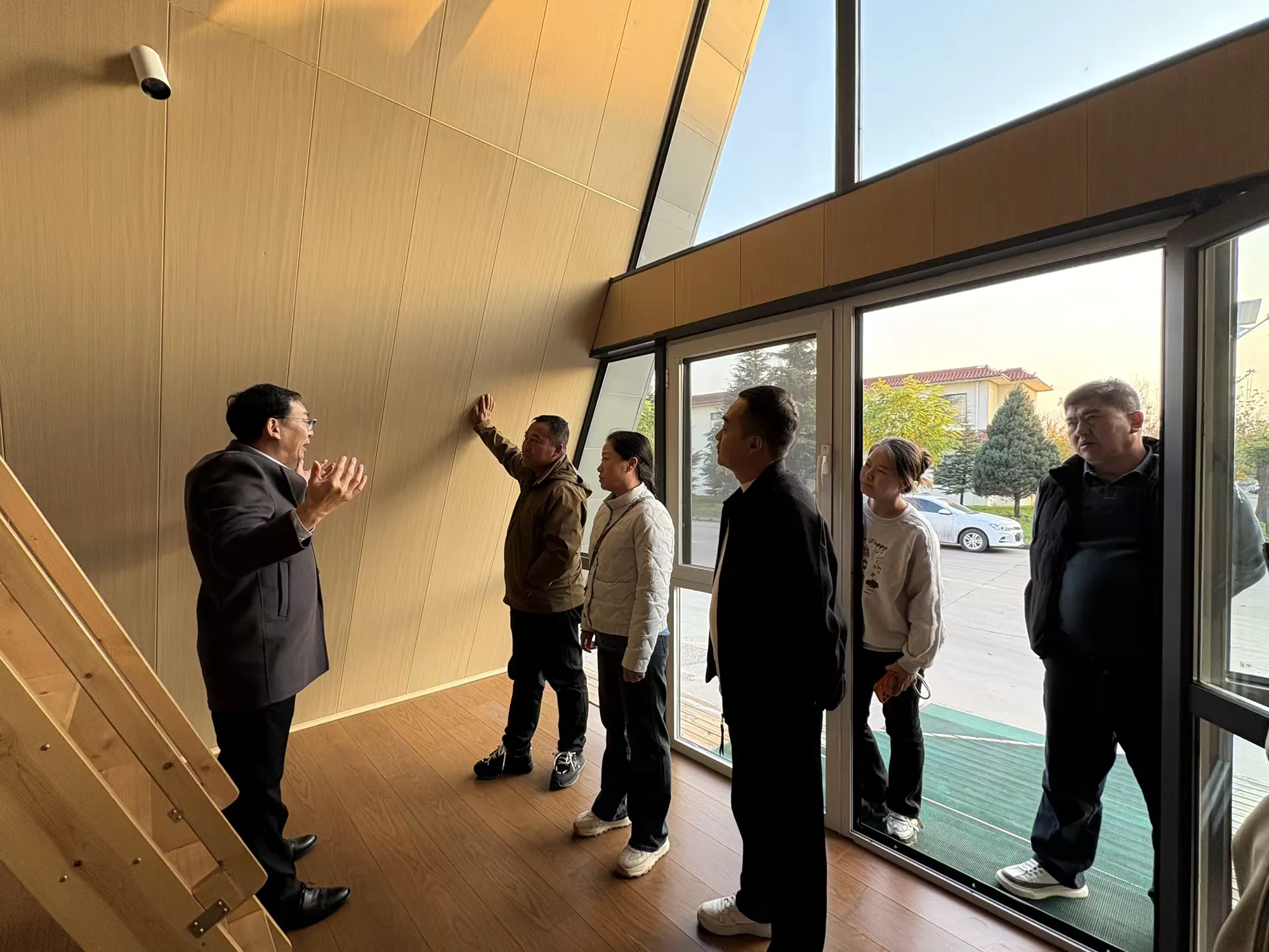 11月14日,我中心与深圳山西商会会长景苗军一同赴山西中技金谷新型建材有限公司,实地考察预制装配式建筑项目,并交流拟计划投资旅游驿站项目。
