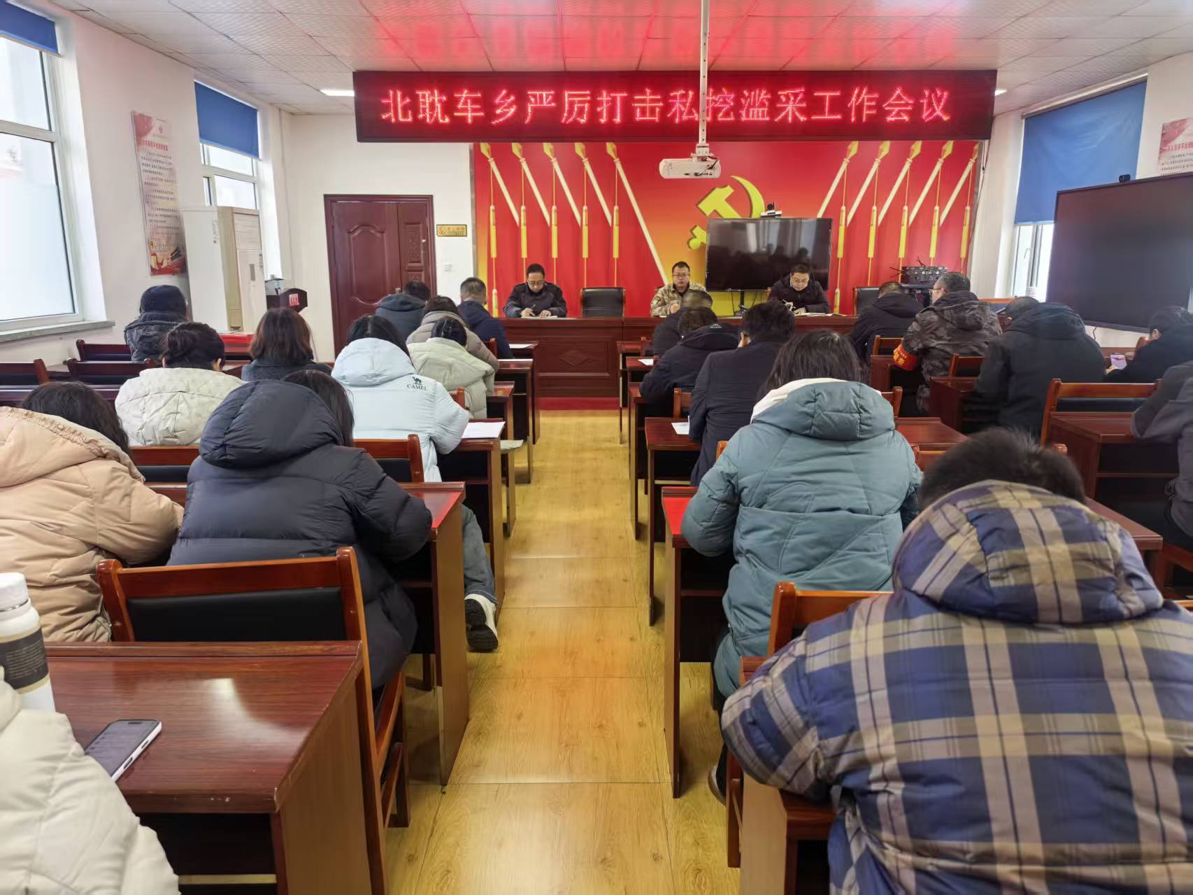 12月24日,北耽车乡召开严厉打击私挖滥采工作会议。全体机关干部参加会议。