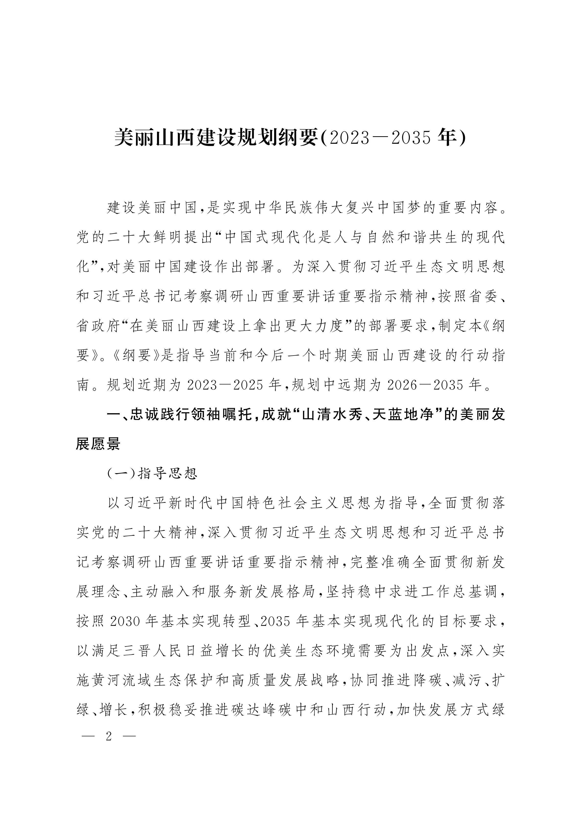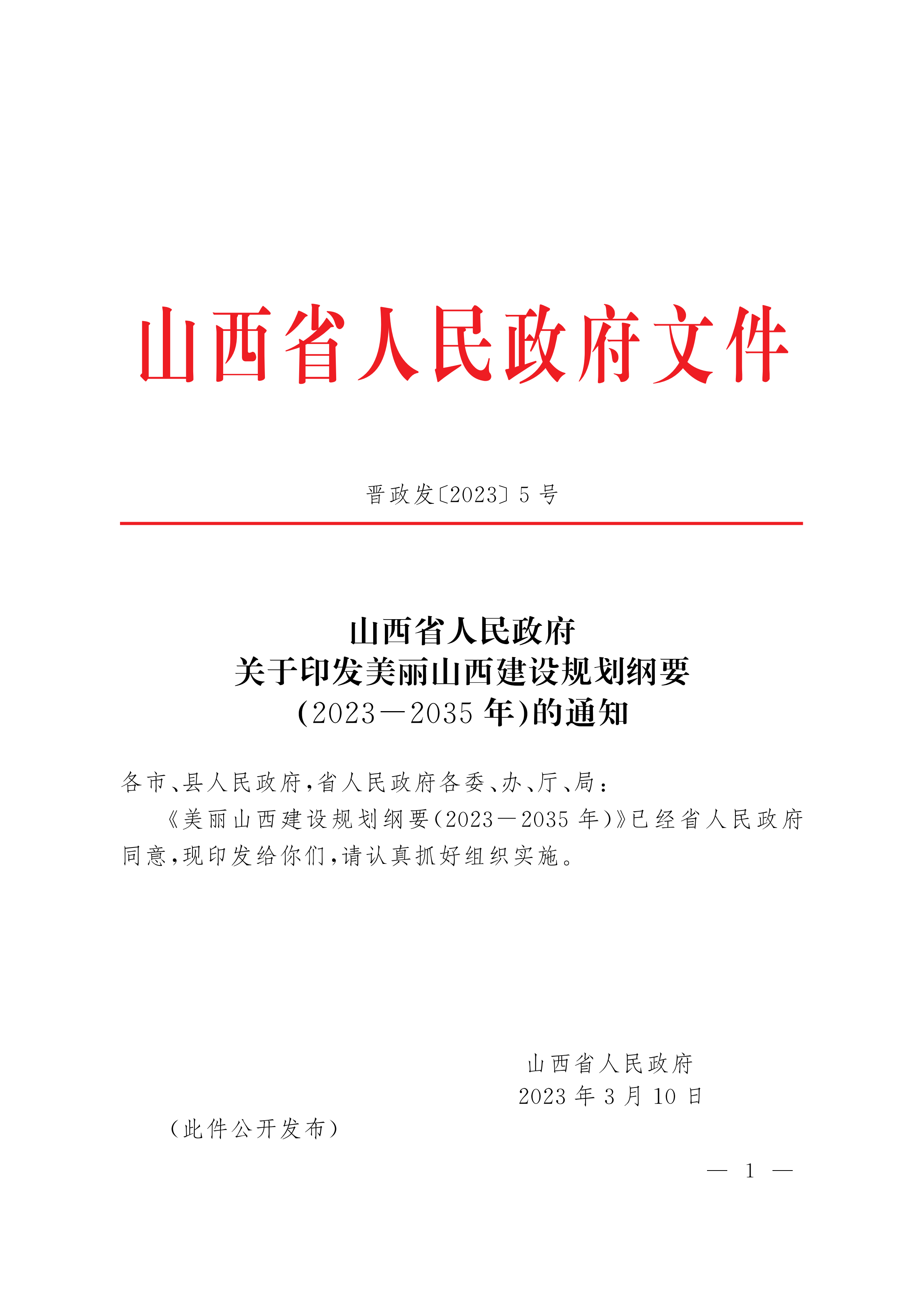 山西省人民政府关于印发美丽山西建设规划纲要(2023-2035年)的通知