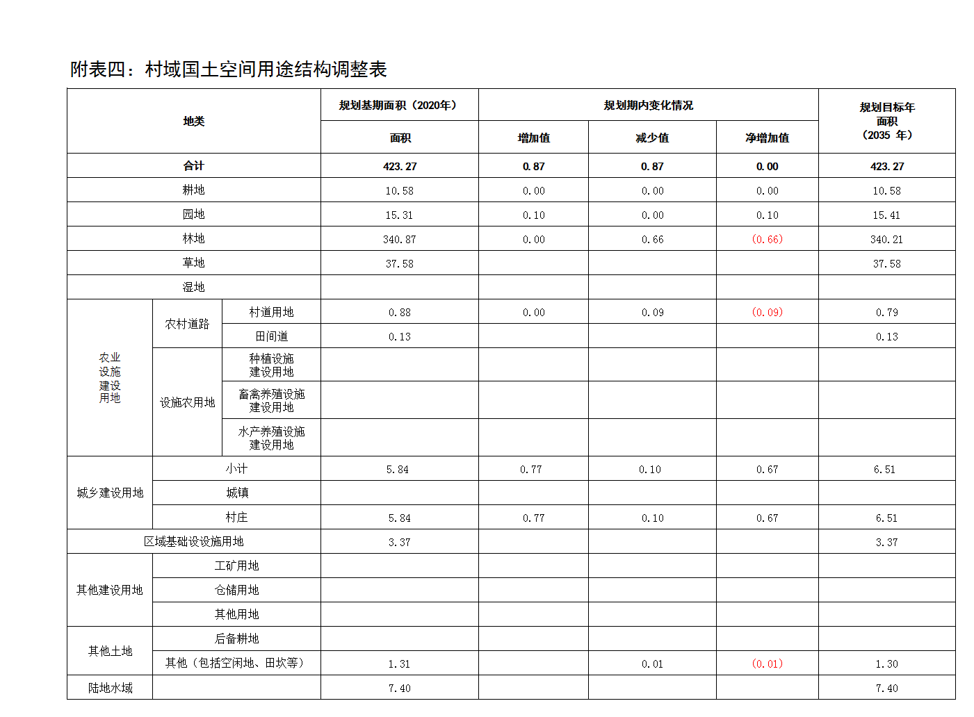 源头村村域总面积423.2661公顷,本规划对村域的土地用途、用地布局进行了调整和优化,调整后村域耕地面积保持不变10.5798公顷,园地15.4459公顷,林地340.2062公顷,草地37.5795公顷,农村道路0.9175公顷,农业设施建设用地0.9507公顷,城乡建设用地6.5104公顷(村庄建设用地6.5104公顷),区域基础设施用地3.3643公顷,其他土地1.3073公顷,陆地水域7.3952公顷。