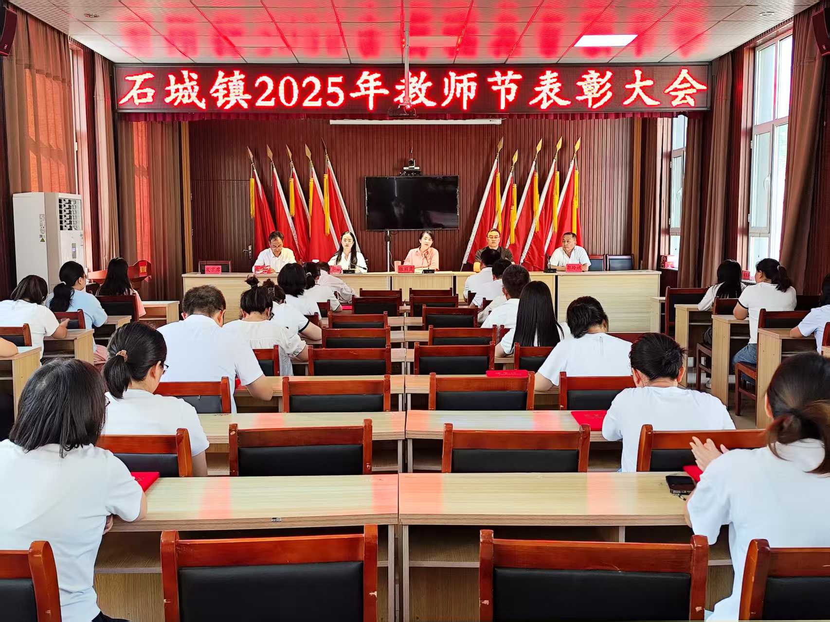 9月8日,石城镇2025年教师节表彰大会在镇政府礼堂盛大举行,共同庆祝第41个教师节,大会围绕“以教育家精神铸魂强师,谱写教育强国建设华章”主题展开。