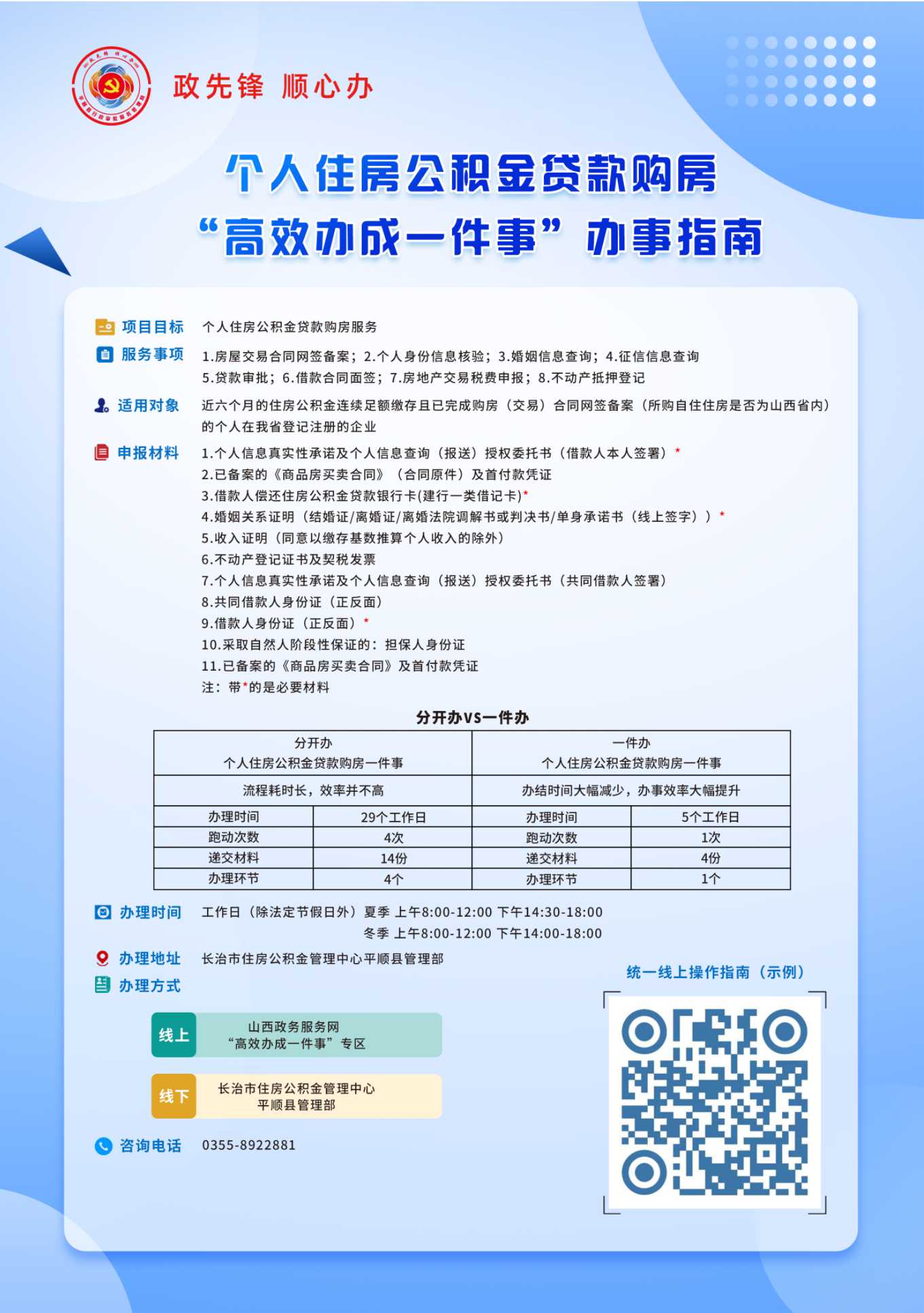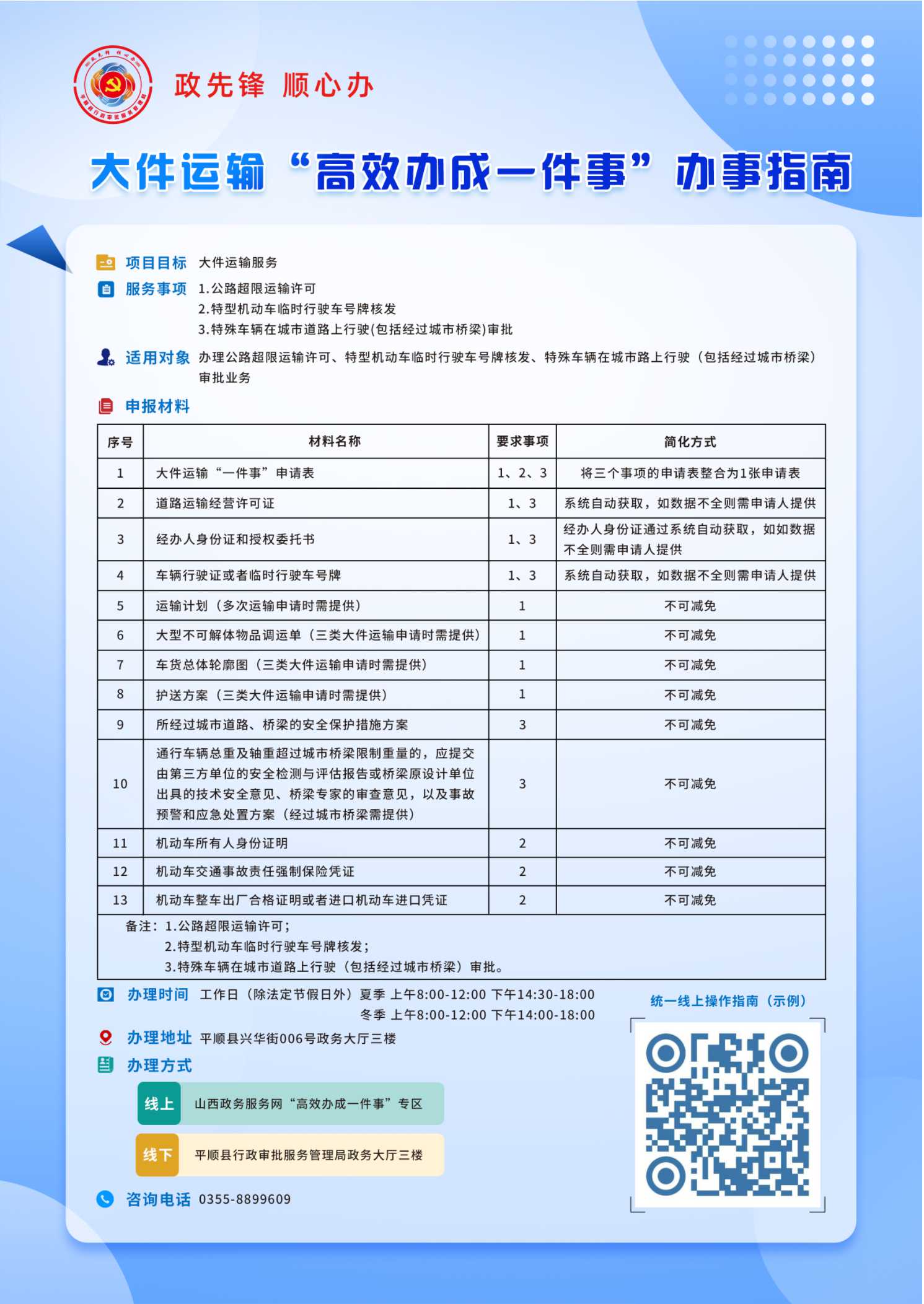 平顺县发布第四批“高效办成一件事”重点事项办事指南