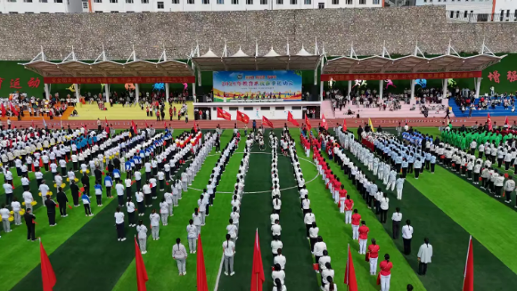 入场式结束后,全场肃立,五星红旗在国歌声中冉冉升起。张娟代表县委县政府致开幕词。她指出,体育是立德树人的重要载体,全体运动员要奋勇拼搏、超越自我,赛出竞技水平,赛出道德风尚,赛出青春风采。全体裁判员要严谨细致、秉公执裁,遵守竞赛规程,保障赛事安全,维护公平公正。全县教育系统要以此次运动会为契机,持续抓实体育、美育、劳动教育,让学生在运动中强健体魄、在拼搏中磨砺意志、在奋斗中成就精彩人生。